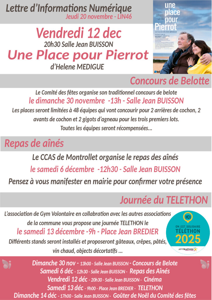 Lettre informations numérique : 20 novembre 2025 par Ville de Montrollet | Nov 20, 2025 | La vie, LIN