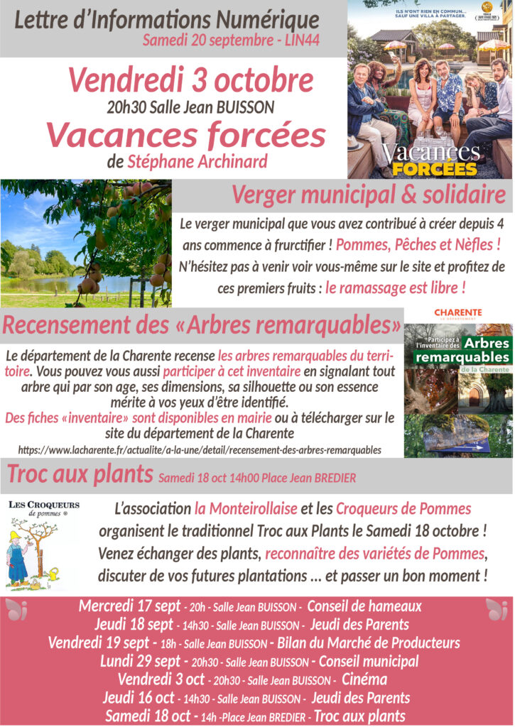 Lettre informations numérique : 20 septembre 2025 par Ville de Montrollet | Sep 20, 2025 | La vie, LIN
