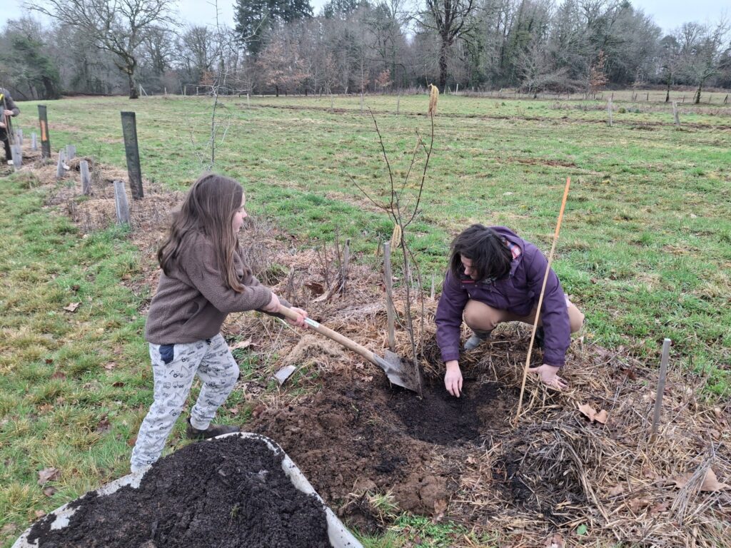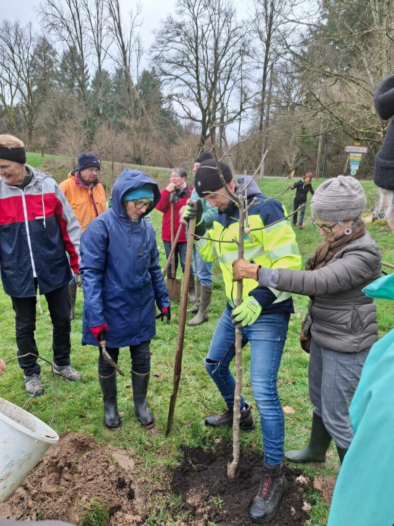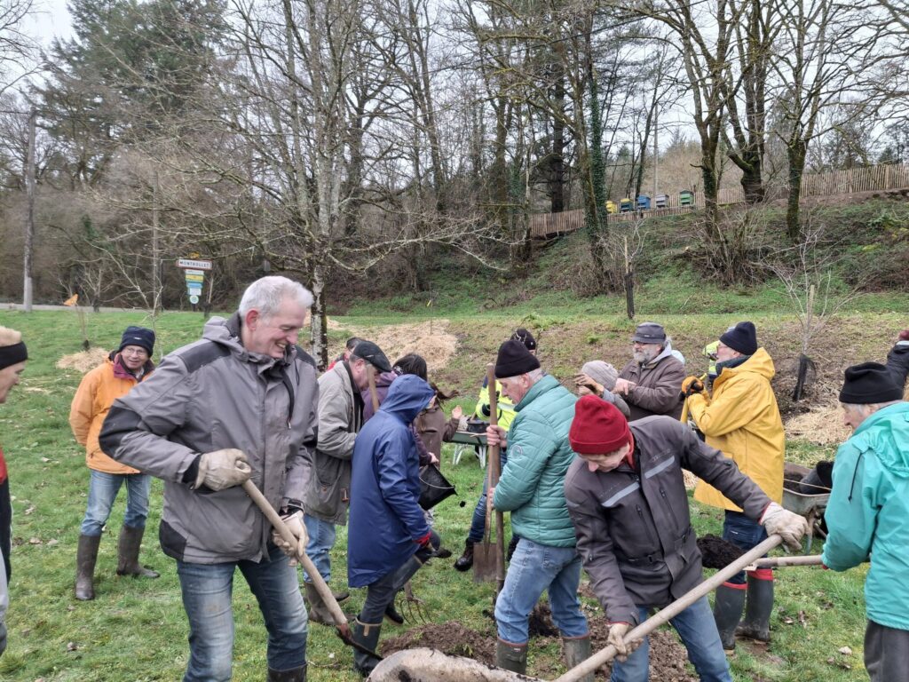 Une trentaine de bénévoles se sont donné rendez-vous place Jean BREDIER avant de rejoindre le verger municipal et solidaire de la commune pour planter les 30 derniers arbres fruitiers sur les 350 prévus sur le mandat. ![]()